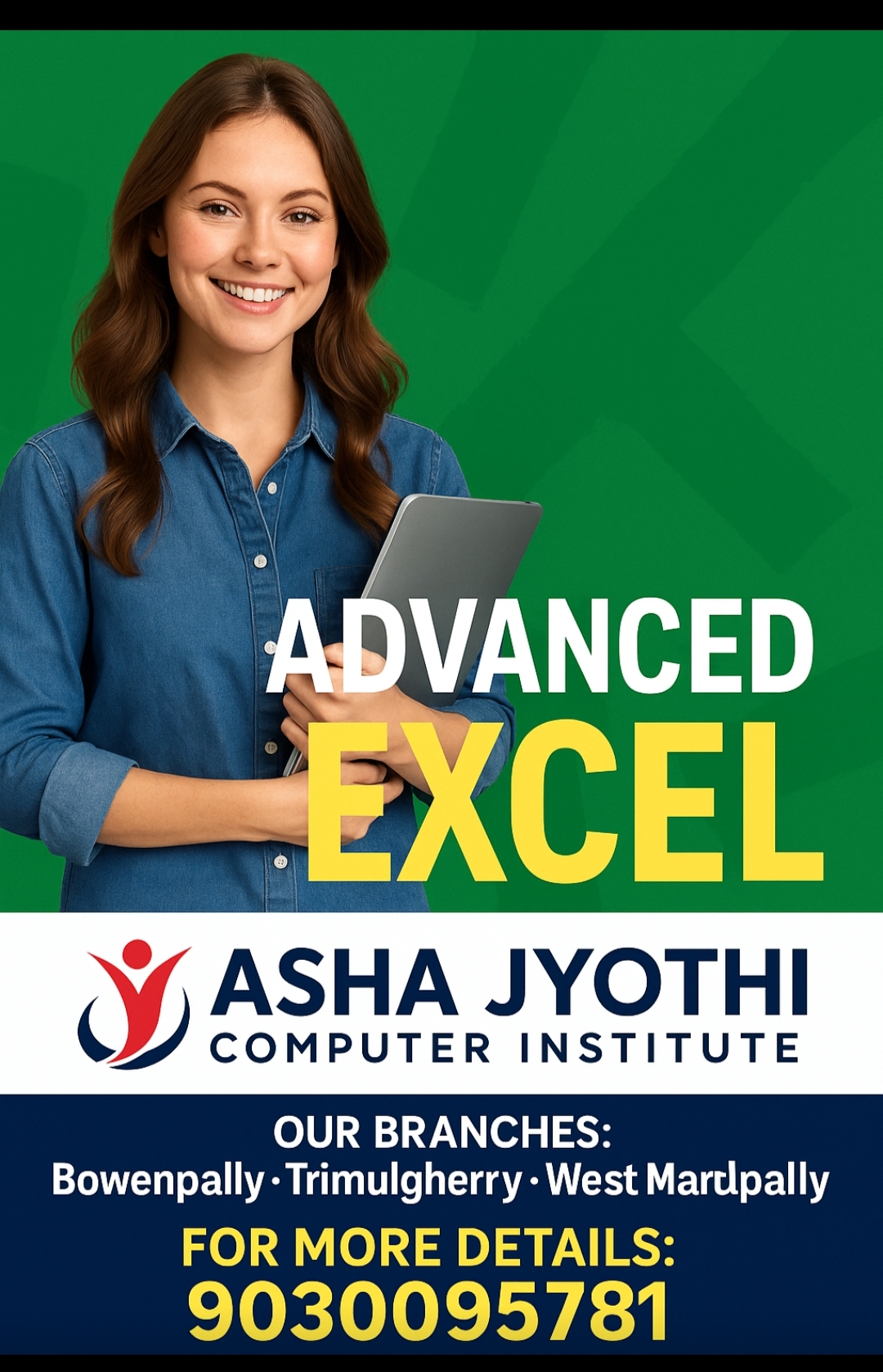 The Advance Excel Course ay Asha Jyothi Computer Institute is designed to helpStudents and professionals Master data handling, analysis, and reporting skillsUsed in real corporate environments. This course focuses on practical, job -oriented training to improve productivity and decision-making skills.